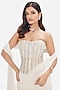 Featuring an ivory draped saree in georgette base with sequins, cutdana and pearl work. It is paired with a corset blouse. Style this set with zircon earrings, a clutch bag and metallic heels for a sangeet, cocktail or engagement ceremony