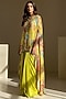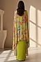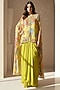 Featuring a lime cape in crepe base with embroidery and print. It is paired with a bustier and a draped skirt. Accentuate it with zircon jewellery, a clutch and heels for a cocktail soiree, sangeet or engagement ceremony.