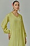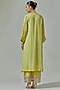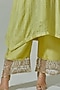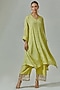 Featuring a lime green kurta in muslin base with an asymmetric hem. It is paired with matching pants.