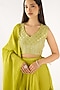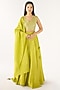Featuring a lime lehenga in tissue base with embroidery. It is paired with an embroidered blouse and a dupatta. Style it with statement earrings, soft curls, and minimal makeup for a complete look, perfect for engagement ceremonies, sangeet nights, or daytime wedding functions.