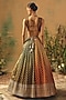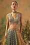 Featuring a multi-colored lehenga in georgette base with sequins and floral embroidery. It is paired with an embroidered blouse and an embroidered dupatta. Accentuate it with kundan polki or meenakari jewellery, embellished heels and a potli bag for an engagement or wedding ceremony.