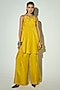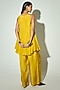 Featuring a mustard tunic in bamberg silk base. It is paired with wide palazzo pants. Accentuate it with gold jewellery and block heels for a festive ceremony.