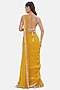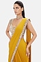 Featuring a mustard draped saree in georgette base with sequins, mirror, beads and coin work. It is paired with a blouse. Accentuate it with dangler earrings and heels for a festive occasion or sangeet ceremony.