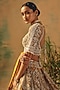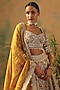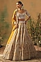Featuring a mustard lehenga in organza base with sequins, crystal, cutdana and beads embroidery. It is paired with an embroidered blouse and an embroidered dupatta. Accentuate it with kundan polki or zircon jewellery, embellished heels and a potli bag for a wedding or haldi ceremony.