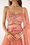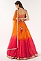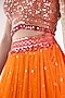 Featuring an orange lehenga in georgette base with embroidery. It is paired with an embroidered blouse and a dupatta. Style it with statement earrings, soft curls, and minimal makeup for a complete look, perfect for engagement ceremonies, sangeet nights, or daytime wedding functions.