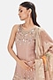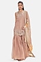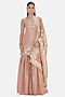Featuring a peach short kurta in tissue base with sequins, coin, mirror and beads work. It is paired with sharara pants and a dupatta. Style it with silver or swarovski jewellery and metallic heels for festive occasion, cocktail party, sangeet or engagement ceremony.