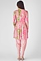 Featuring a pink kurta in georgette base with sequins, mirror and pearl embroidery. It is paired with a dhoti. Accentuate it with statement earrings and heels for a festive look.