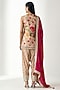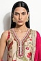 Featuring a pink kurta in muslin and organza base with mirror and zari embroidery. It is paired with a farshi salwar and a dupatta. Style it with antique gold or kundan jewellery, soft waves, and nude heels for an earthy vibe. Perfect for daytime weddings, festive brunches, and intimate celebrations.