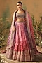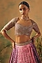 Featuring a purple lehenga in banarasi base with sequins, cutdana and beads embroidery. It is paired with an embroidered blouse and a banarasi bandhej dupatta. Accentuate it with swarovski or polki jewellery, embellished heels and a potli bag for a wedding, sangeet or engagement ceremony.