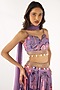 Featuring a purple lehenga in chiffon base with embroidery. It is paired with an embroidered blouse and a dupatta. Style it with statement earrings, soft curls, and minimal makeup for a complete look, perfect for engagement ceremonies, sangeet nights, or daytime wedding functions.
