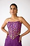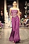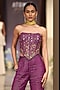Featuring a purple corset in chinon base with mirror, shell and brass embroidery. It is paired with sharara pants. Accentuate it with meenakari jewellery, block heels and a potli bag, perfect for a sangeet or engagement ceremony.
