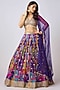 Featuring a purple lehenga in georgette base with cancan, shells, coins and mirror work. It is paired with an embroidered blouse and a dupatta. Accentuate it with statement jewellery and heels for weddings or sangeet ceremonies.