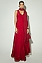 Featuring a red anarkali in bamberg silk base. It is paired with pants and a dupatta. Accentuate it with kundan polki jewellery and block heels for a sangeet, wedding or festive ceremony.