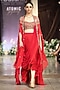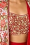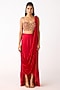 Featuring a red cape in glass lycra and viscose organza base with sequin, brass and thread embroidery. It is paired with an embroidered blouse and a draped skirt having a side slit. Accentuate it with meenakari jewellery, block heels and a potli bag, perfect for a sangeet or engagement ceremony.