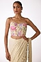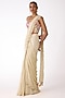 Featuring a white saree in chiffon base with ghungroo, mirror, dabka and beads embroidery. It is paired with an embroidered blouse. Accentuate it with kundan polki jewellery and heels for festive occasions or wedding ceremony.
