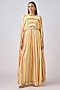 Featuring a yellow dress in georgette base with beadwork and crystal embellishment. It is paired with a bustier. Accentuate it with statement earrings and heels for evening wear or cocktail party.