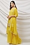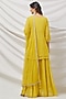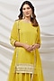 Featuring a yellow kurta in georgette base with mirror, gota, and sequins embroidery. It is paired with matching sharara pants and a net dupatta.
