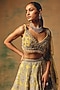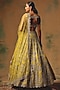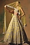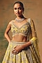 Featuring a yellow lehenga in net base with sequins, crystal, stones and pearl embroidery. It is paired with an embroidered blouse and an embroidered dupatta. Accentuate it with swarovski or zircon jewellery, embellished heels and a potli bag for a wedding or haldi ceremony.