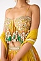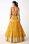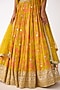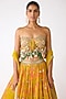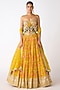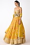 Featuring a yellow lehenga in organza base with mirror, shells, thread and brass embroidery. It is paired with a blouse and a dupatta. Accentuate it with kundan polki jewellery and heels for a wedding or haldi ceremony.