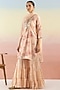 Featuring a peach kurta in cotton base with floral print and embroidery. It is paired with contrasting palazzo pants and a dupatta.