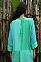 Featuring an aqua blue top in crepe base. It is paired with pants. Accentuate it with dangler earrings and mules for festive gatherings or family dinner.