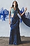 Featuring a blue pre-draped saree in chiffon base. It is paired with a blouse. Accentuate it with oxidised earrings and embroidered wedges for a stylish ensemble, ideal for wedding ceremonies or festive gatherings.