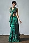 Featuring a bottle green pre-draped saree in chiffon base with hand embellishment. It is paired with a blouse. Accentuate it with oxidised earrings and embroidered wedges for a stylish ensemble, ideal for wedding ceremonies or festive gatherings.