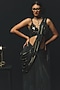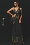 Featuring a charcoal pre-draped saree in gajji satin and chiffon base. It is paired with an embellished blouse. Style with metallic heels, ruby jewellery and a statement clutch for a complete look, perfect for cocktail parties, evening events, sangeet or intimate celebrations.