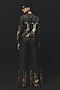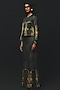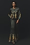 Featuring a charcoal grey top in linen satin base. It is paired with pants. Style with metallic or pump heels, statement earrings and a leather clutch for a complete look, perfect for cocktail parties, evening events or sangeet celebrations.