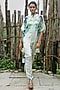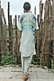 Featuring a grey top in crepe base. It is paired with scalloped pants. Accentuate it with dangler earrings and mules for festive gatherings or family dinner.
