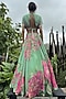 Featuring a mint lehenga in organza base with floral pattern. It is paired with a chinon chiffon top and an organza dupatta. Accentuate it with polki jewellery and heels for festive occasions or mehendi ceremony.