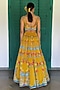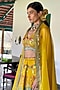 Featuring a mustard lehenga linen satin and organza base with print. It is paired with an embroidered blouse and a dupatta. Accentuate the designer lehenga with statement jewellery and heels for a wedding, engagement or sangeet ceremony.