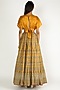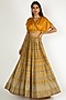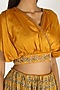 Featuring a mustard yellow flared lehenga in tussar base with motif hand embroidery and floral print. It is paired with a matching crop top.