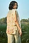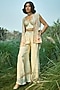 Featuring an off-white jacket in tissue base. It is paired with a tabby top and pants. Accentuate it with stud earrings and flats for casual outings, brunches or sundowner.