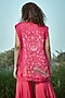 Featuring a pink jacket in chiffon base with embroidery. It is paired with a top and pants. Accentuate it with stud earrings and flats for brunches, sundowner or vacation wear.