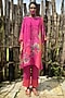Featuring a pink kurta in chinon chiffon base with embroidery and print. It is paired with linen silk pants and an inner. Accentuate it with polki earrings and mules for festive occasions.
