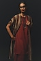 Featuring a rust jacket in crepe and linen silk base. It is paired with an inner and cowl dhoti pants. Style with nude heels and zircon stud earrings for a complete look, perfect for gatherings, brunch or cultural events.
