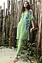 Featuring a sage green top in crepe base with hand embroidery. It is paired with pants. Accentuate it with dangler earrings and mules for festive gatherings or family dinner.