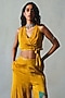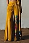 Featuring a yellow wrap-around top in chiffon base. It is paired with flared pants. Accentuate it with hoop earrings and strappy heels for a stylish ensemble, ideal for daytime parties or haldi celebrations.