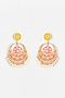 Featuring a pair of gold finish toned dangler earrings with multi-colored zari and silk thread embroidery work, including golden pearl hangings, set in brass metal. These earrings are perfect for festive occasions or haldi ceremonies.