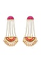 Featuring a pair of gold finish hand embroidered dangler earrings studded with pearls, set in brass.