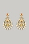 Featuring a pair of gold finish enameled dangler earrings studded with multi-colored swarovski, set in brass. Add a touch of sparkle to your ensemble, perfect for wedding ceremonies or festive celebrations.