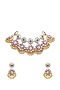 Featuring a gold finish necklace studded with pearls including zari silk thread embroidery, set is brass. It is paired with a matching pair of earrings.