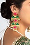 Gold Plated Green & Pink Silk Thread Embroidered Triangle Dangler Earrings