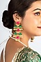Featuring a pair of 22kt gold plated triangle dangler earrings studded with dark green and pink silk thread embroidery, including pearls, set in brass. Perfect wear for haldi, sangeet or mehendi ceremonies.