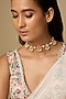 Featuring a 22kt anti-tarnish gold plated choker necklace with pastel enameling and freshwater pearls, set in brass. Add a hint of sparkle to your ensemble, ideal for weddings, sangeet, haldi, mehendi, and other festive celebrations.