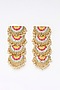 Featuring a pair of matte gold finish tiered semi-circular dangler earrings with multi-colored zari embroidery and pearl hangings, set in mixed metal. Perfect choice for weddings and other Indian festivities.