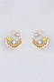 Matte Gold Finish Multi-Colored Thread Embroidered & Pearl Hoop Earrings