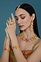 Featuring a matte gold finish layered necklace with pastel silk thread embroidery and pearl hangings, set in brass. It is paired with a matching pair of earrings, a maang tikka, a rhombus-shaped ring and a pair of bracelets. Perfect wear for a festive, haldi or any pre-wedding ceremony.