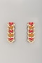 Matte Gold Finish Pink & Yellow Thread Embroidered Dangler Earrings